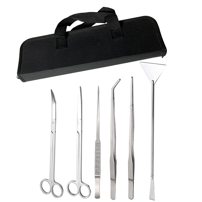 NET161B Aquarium Cleaning Tools Aquascaping Tools set Black 6 in 1 Kits Stainless Steel Aquatic Plants Scissors Tweezers Set
